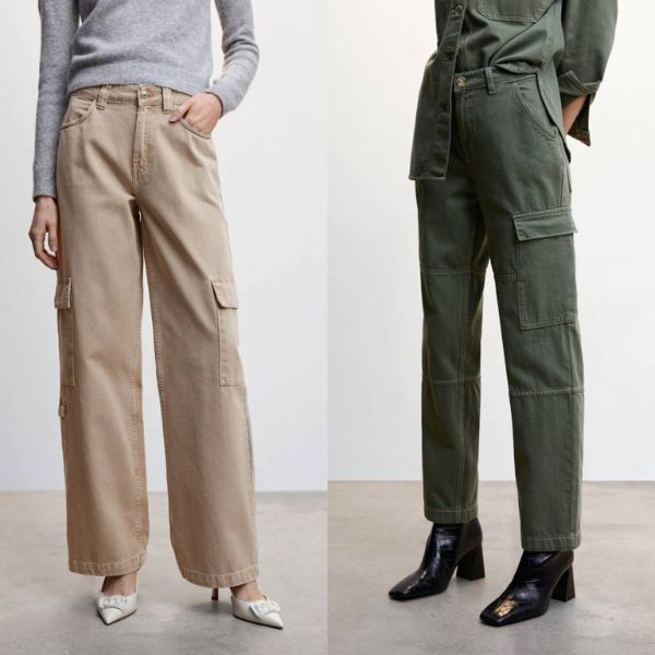 Weite Cargohosen mit großen aufgesetzten Taschen sind der führende Modetrend dieser Saison. Es ist nicht verwunderlich, dass sie in der Frühjahr-Sommer 2023 auf dem Höhepunkt der Popularität bleiben werden. Solche Kleidungsstücke können mit eng anliegenden Oberteilen, Hemden, Rollkragenpullovern, kurzen Blazern, Jacken oder umgekehrt mit langen Strickjacken, Trenchcoats usw. kombiniert werden.