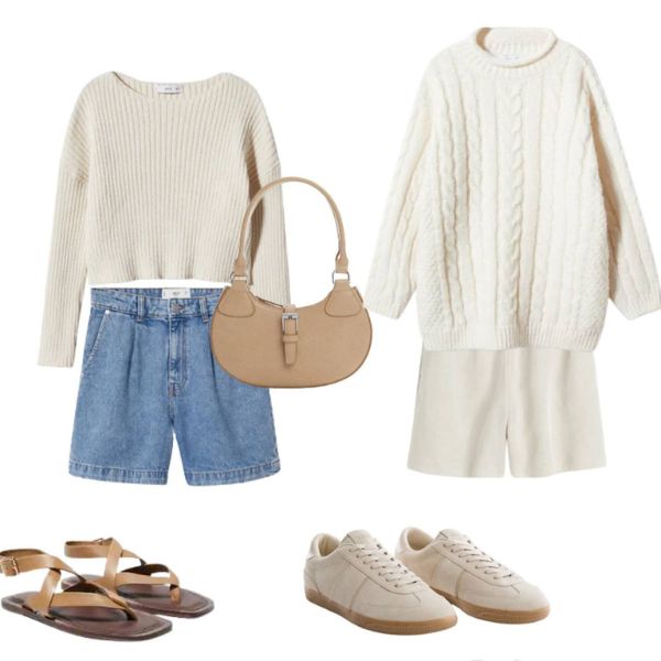 Die Kombination von Pullover und Shorts ist unerwartet und stilvoll. Du kannst sowohl Jeansshorts als auch Shorts aus anderen Materialien wählen. Füge Sneakers oder Sandalen hinzu, um einen vollständigen Look zu kreieren.