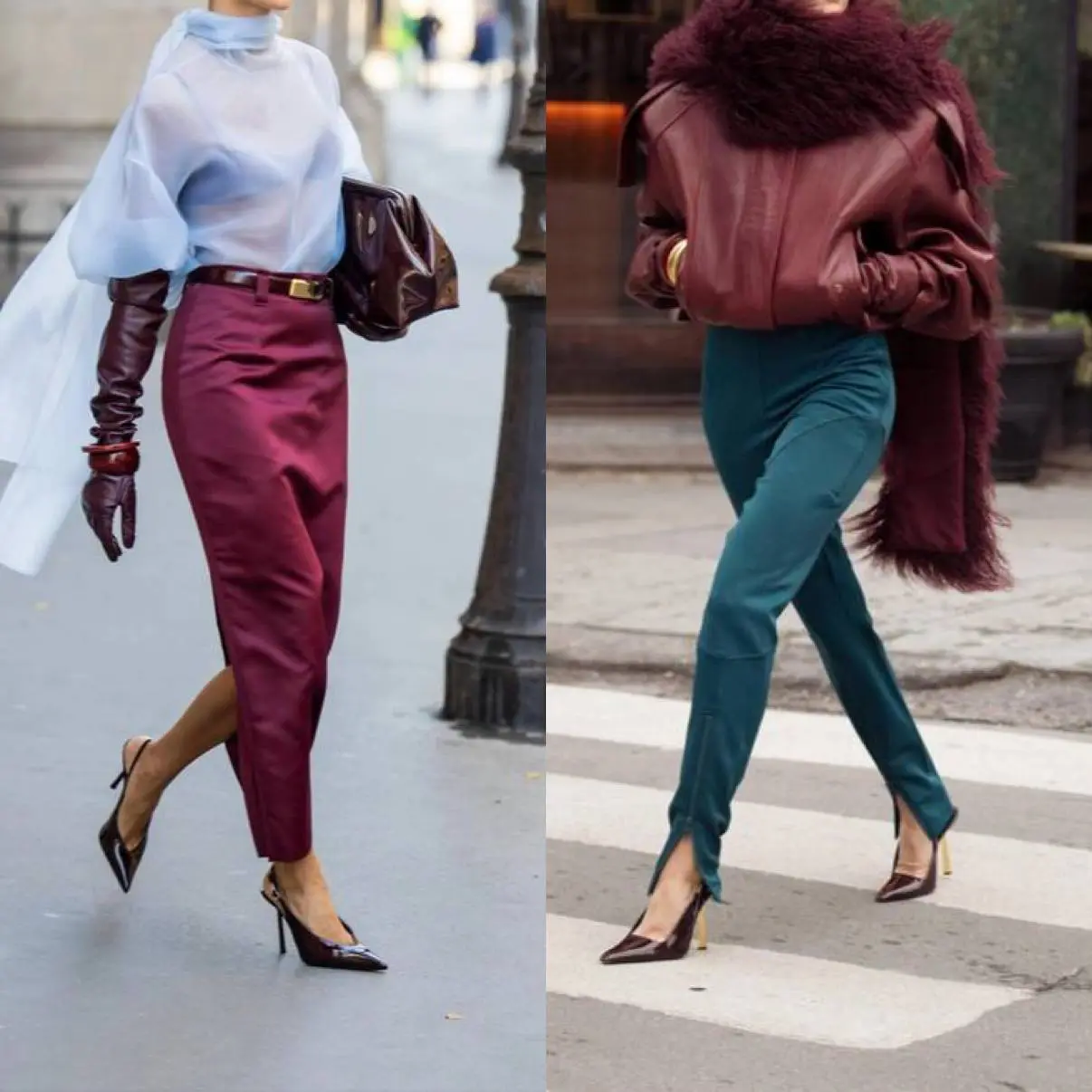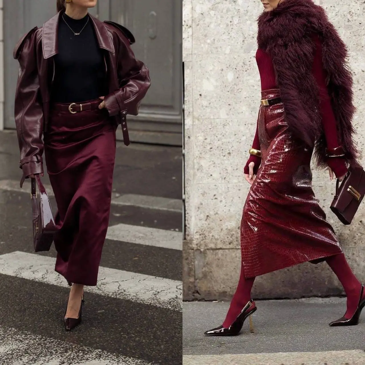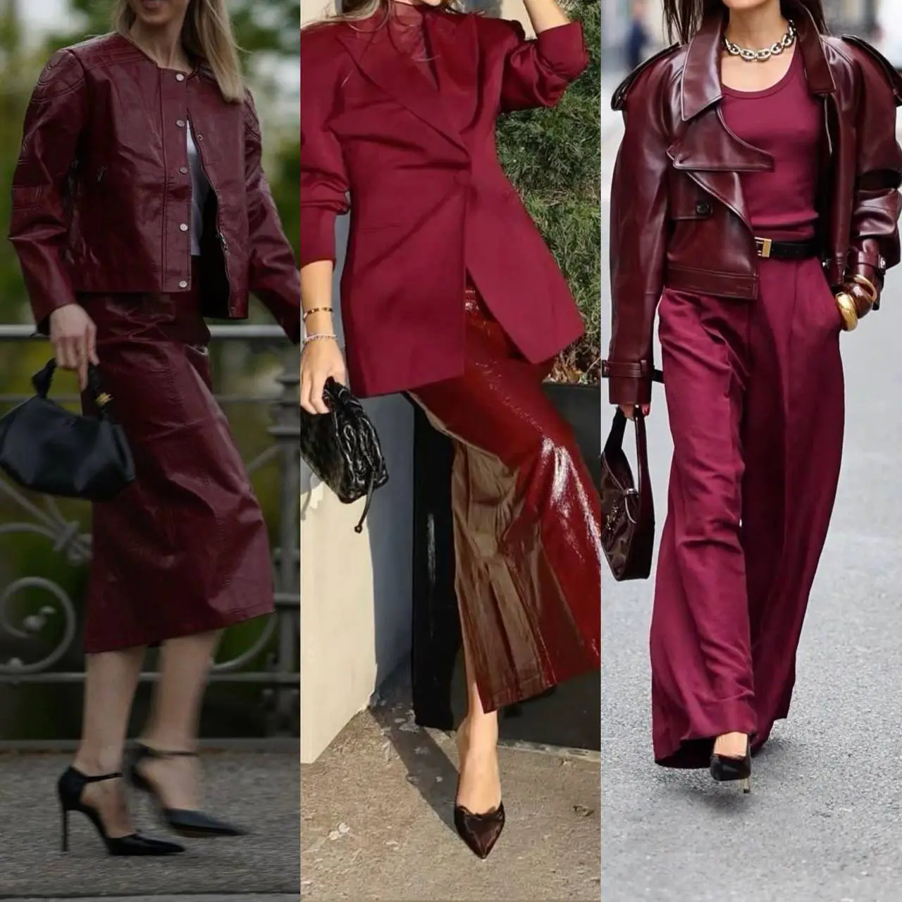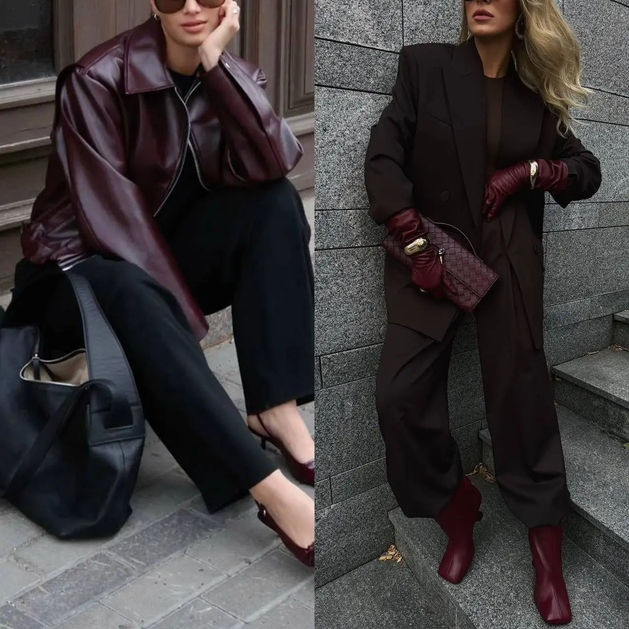Dieser elegante Beerenton bleibt und wird 2026 fester Bestandteil moderner Garderoben, von strukturierten Mänteln bis hin zu fließenden Kleidern.