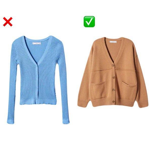 Weiche gestrickte Pullover und Jacken sind zwar bequem und gemütlich, aber sie können dich unförmig und ungepflegt aussehen lassen. Entscheide dich stattdessen für Kleidung aus strukturierten und leichteren Stoffen, die deine Figur betonen und ein gepflegteres Erscheinungsbild erzeugen.