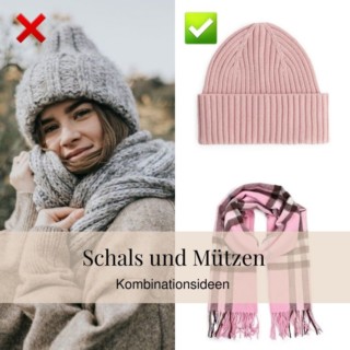 Wie in vielen Situationen im Leben sollten Sie nicht von einem Extrem zum anderen hetzen. Zum Beispiel wirkt ein voluminöser Grobstrickschal in der Kombination mit einer ähnlichen Wollmütze zu voluminös. Eine solche Kombination steht nicht vielen Frauen. Versuchen Sie sich an der goldenen Mitte zu orientieren.