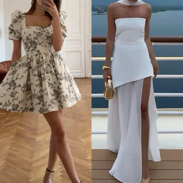 ✨ Modern: Asymmetrien, fließende Stoffe, minimalistische Designs.
