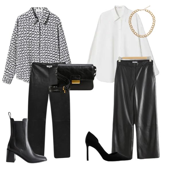 Mit einer Lederhose und einem weißen Hemd liegst du bestimmt nicht falsch. Das ist ein Outfit, in dem sich zwei vielseitige Kleidungsstücke in einer Kombination treffen. Dieses Outfit kann im Büro (wenn es keine strenge Kleiderordnung gibt) oder bei einem Geschäftstreffen getragen werden. Du kannst außer einem weißen Hemd auch jedes andere Hemd, sei es einfarbig oder mit einem Aufdruck wählen. Hab keine Angst zu experimentieren, Mut ist willkommen.