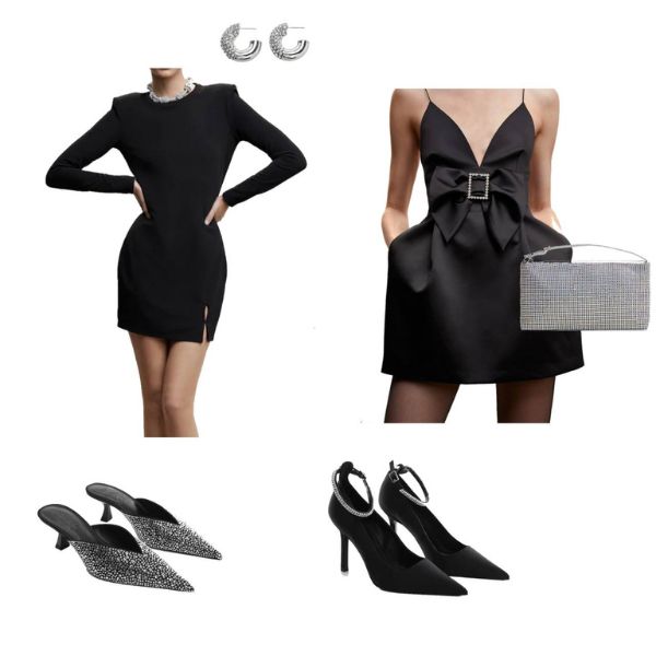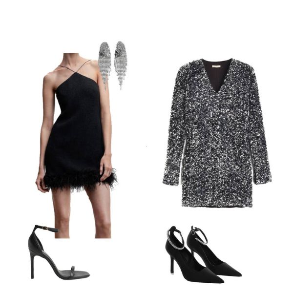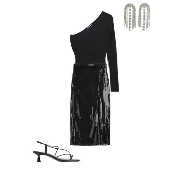 Не забывайте, что законченный образ делают аксессуары. Выбирайте из золотых и серебряных цветов, ведь блестящие украшения, сумочка и обувь — неотъемлемая часть праздничного аутфита.