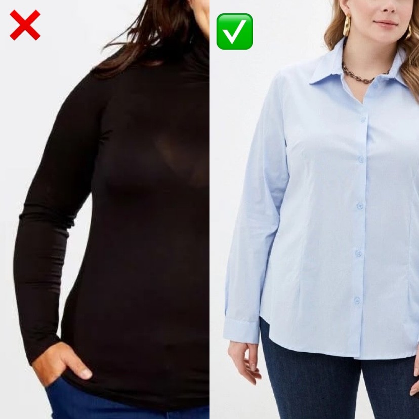 Хотя мягкий трикотаж может быть комфортным и уютным, но он также может придать вам неопрятный вид и добавить лишние кг. Вместо этого, выбирайте одежду из более структурированных и легких тканей, которые подчеркнут вашу фигуру и создадут более аккуратный образ.