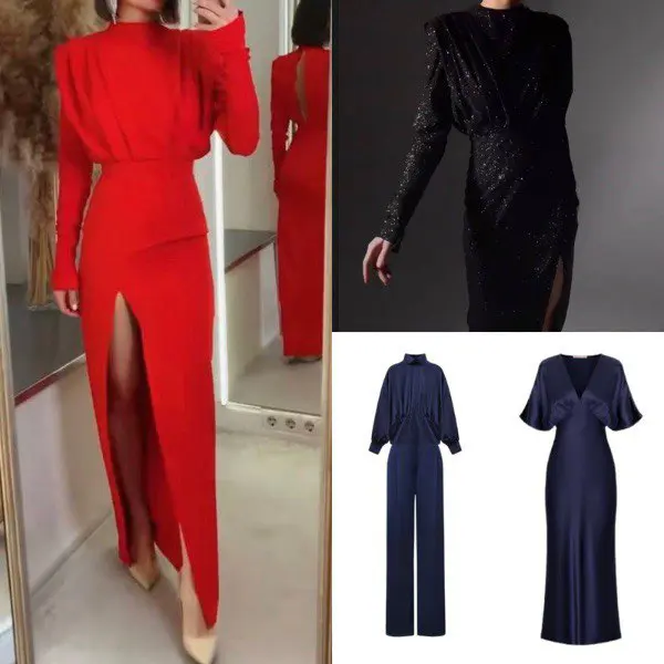 Обратите внимание на ткани, которые подчеркивают праздничную атмосферу: бархат, атлас, шелк, органза, пайетки и металлизированные материалы. Эти фактуры не только выглядят роскошно, но и создают настроение праздника.