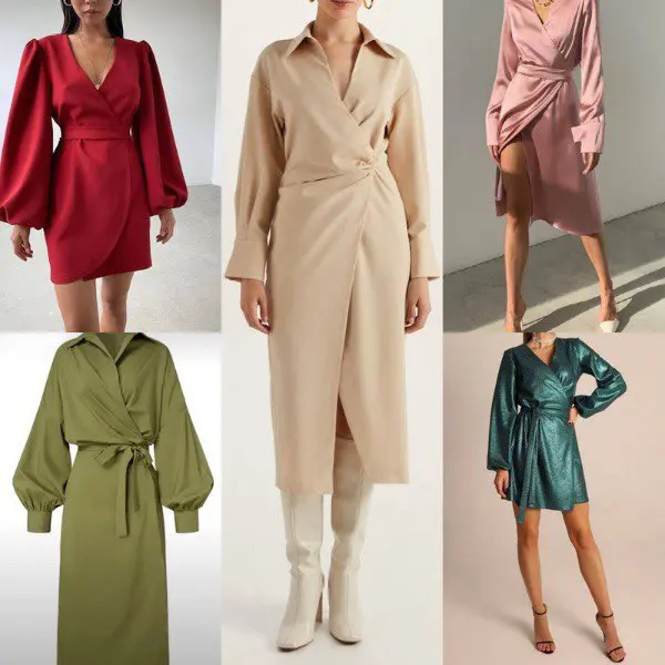 Это могут быть модели с шикарным разрезом или на запах, в которых открыты ноги, а также варианты с V-образным вырезом декольте.