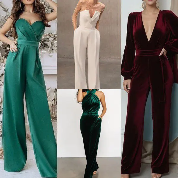 - Комбинезоны: особенно из бархата или с глубоким декольте – это свежо и невероятно стильно.