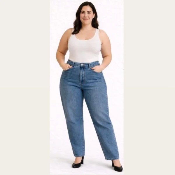 Mom — это сглаженная версия силуэта тела. Свободная посадка в бедрах и мягкое сужение вниз создают гармонию.