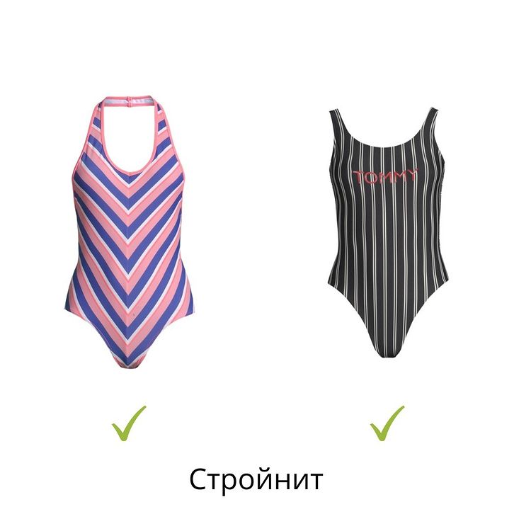Начнём с того, что принт и модель купальника может как испортить фигуру, так и придать ей стройности. В данном случае важна примерка, потому что один и тот же принт по-разному смотрится на девушках разного типажа.