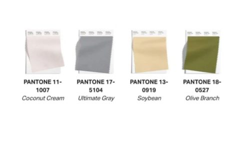 В классическую палитру цветов на предстоящий сезон вошли 4 основных оттенка: Coconut Cream – мягкий белый с отливом персикового, Ultimate Gray – идеальный серый, Soybean – приятный светло-бежевый и Olive Branch – универсальный коричнево-зеленый.
