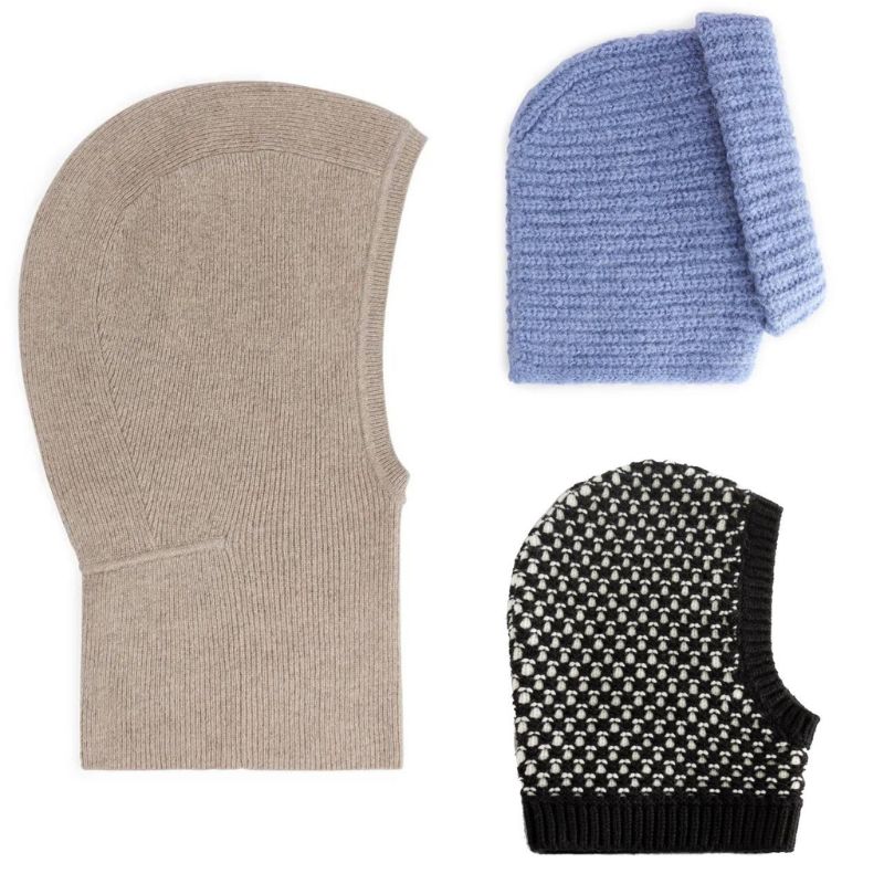 Головной убор, который держится в лидерах несколько сезонов подряд — балаклава. Это интересный вариант, который включает шапку, шарф и капюшон. Он хорошо сочетается с пальто в классическом стиле, пуховиками, а также стегаными куртками и дубленками. Стоит выбирать трикотажные модели с рельефной крупной вязкой.