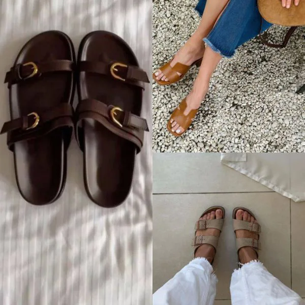 Besser: Schlichte Mules, Lederslipper, breite Riemensandalen – neutral, grafisch, urban.