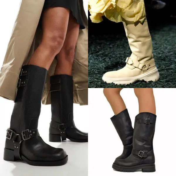 Grobe, massive Biker-Boots kehren auf die Modebühne zurück und werden zum unverzichtbaren Element für alle, die mutige und gewagte Entscheidungen lieben. Sie passen perfekt zu Casual-Looks und schaffen einen Kontrast zwischen femininen Kleidern und robustem Schuhwerk. Diese Boots harmonieren auch hervorragend mit Oversize-Mänteln oder Lederjacken.