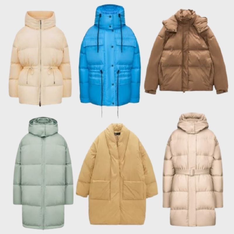 - Berücksichtigen Sie bei Ihrer Auswahl die Farbe und das Material des Modells. Daunenjacken mit leichten, hellen und glänzenden Materialien, können Ihrer Figur mehr Volumen verleihen. Gedeckte, dunkle und matte Versionen hingegen können die Figur kleiner und schmaler wirken lassen.